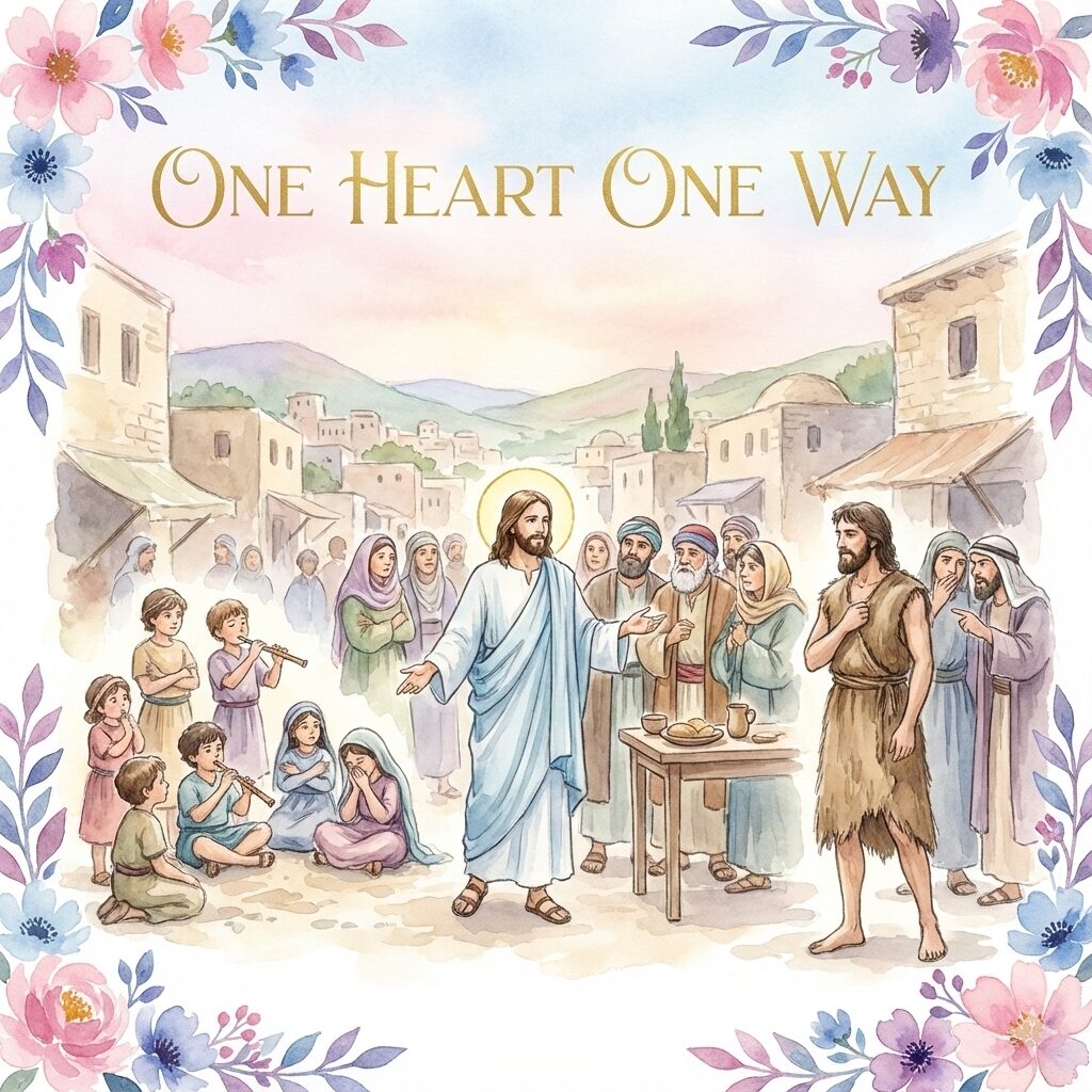 「我可把這一代比作什麼呢?它像坐在大街上的兒童,向其他的孩子喊叫……」耶穌這個生動的比喻,揭示了人心面對天國訊息時的矛盾與封閉。這些「孩童」代表那些自以為是、挑剔苛刻的世代:無論若翰的刻苦禁慾,還是耶穌的與人共融,他們都能找到批評的理由。